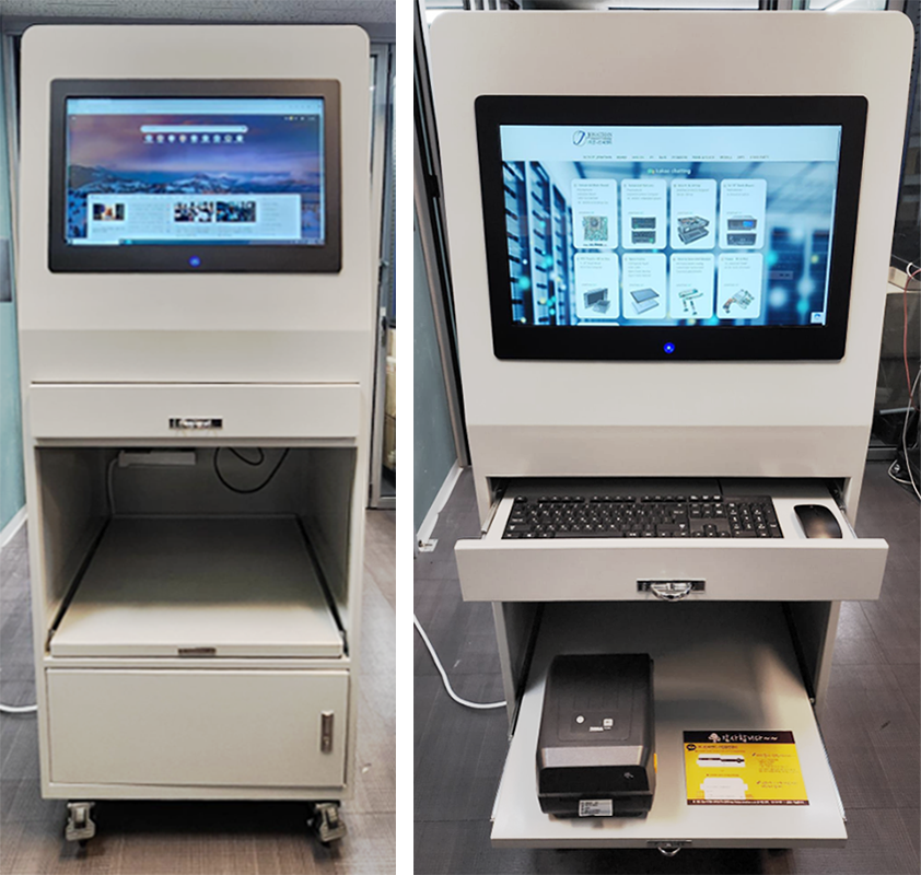 이 제품은 22인치 정전식 터치 패널과 PC가 일체형으로 구성된 키오스크로,